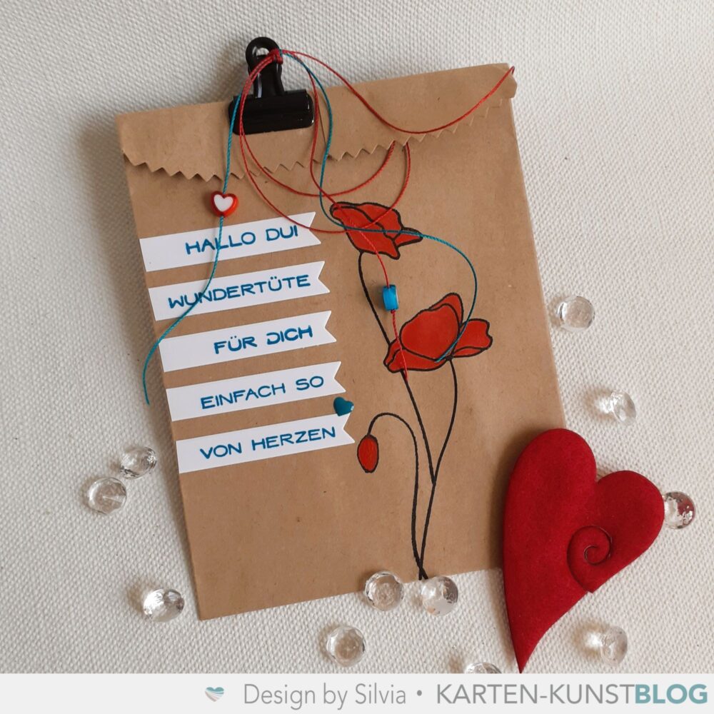 Genutzt habe ich die Skizze diesmal nicht für eine Karte, sondern für eine kleine Wundertüte und dafür folgendes verwendet:
