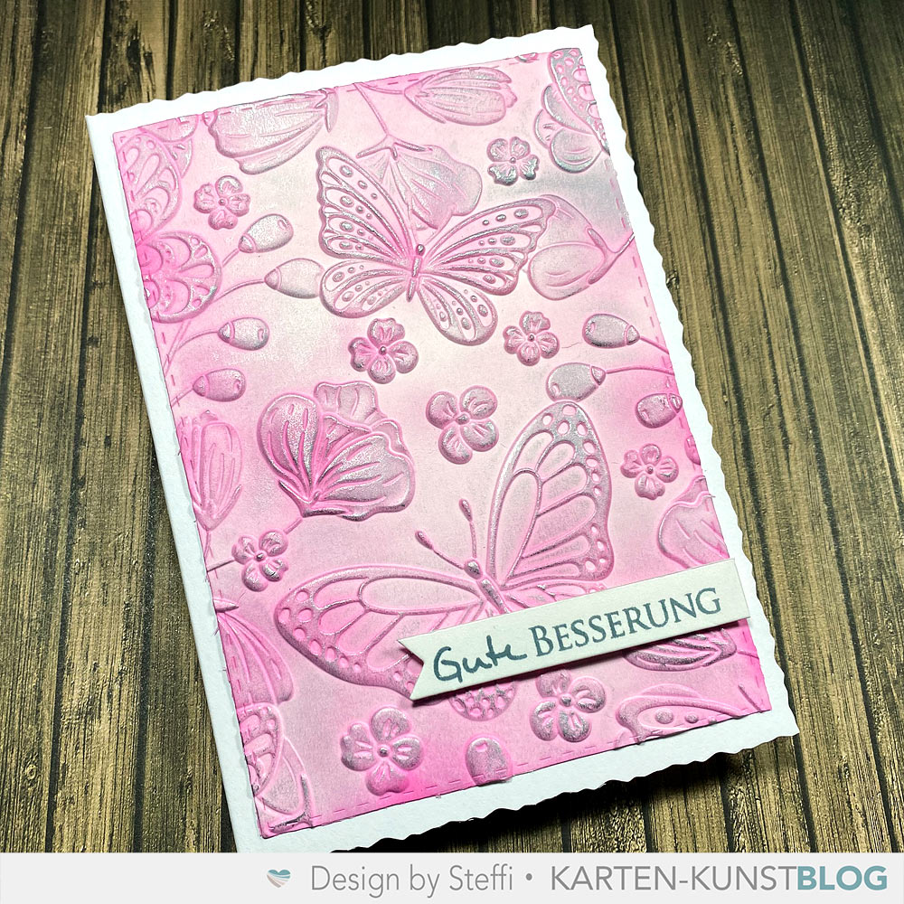 Schmetterlingskarte 8. März 20254. März 2025 Steffi Spellbinders Beautiful Butterflies 3D Embossing Folder Karten-Kunst Clear Stamps KK-0118 – Kombi-Set Grüße 2 Karten-Kunst Stanzschablone kk-D060 – Ribbons