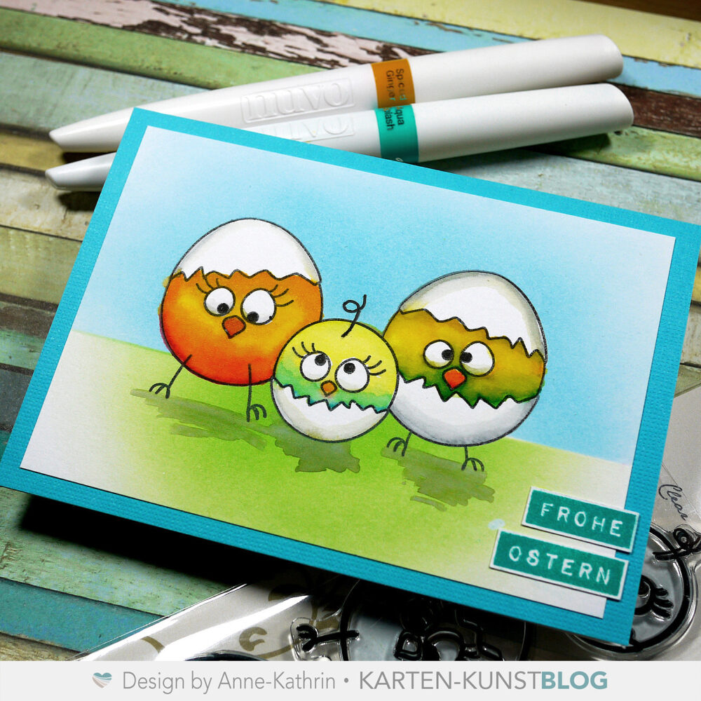 Ich hab damals mit Nuvo Aqua Pens, Distress Oxides, Maskierpapier und ganz viel Liebe gearbeitet – und natürlich mit dem