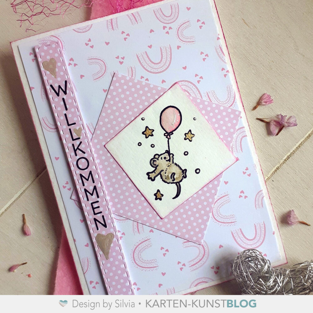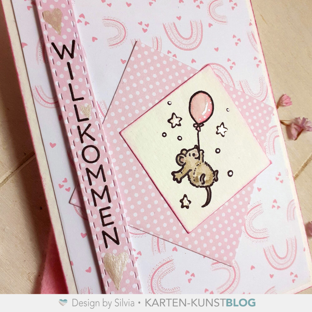 Coloriert habe ich mit Aquarellfarben und Coliro Pearlcolors, mit denen ich auch 3 kleine Herzen auf den Willkommensgruß gemalt habe.🥰