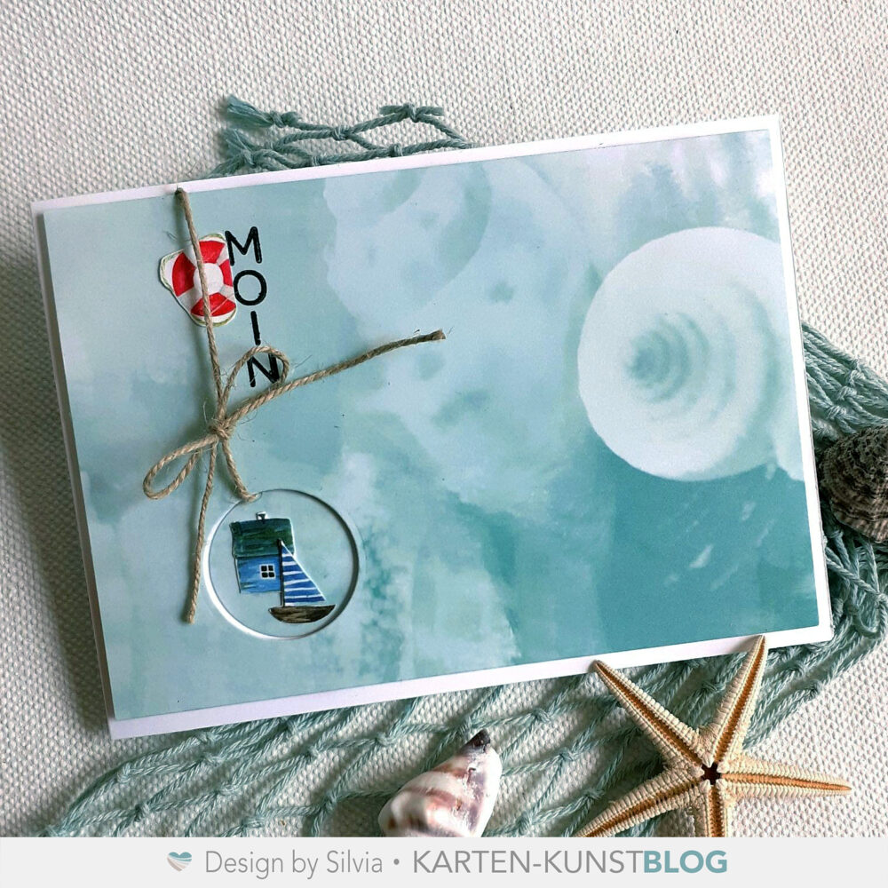 Dazu ein freundliches MOIN aus dem Stempelset KK-0242 âVertikale Worte III Viele GrĂŒĂeâ und eine rustikale Schleife und schon fertig đ„°