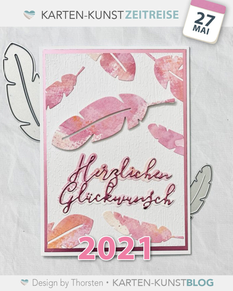 Thorsten hat hier mit Wasserfarben und Stanzen gearbeitet – der Glückwunsch fliegt förmlich über die Karte!