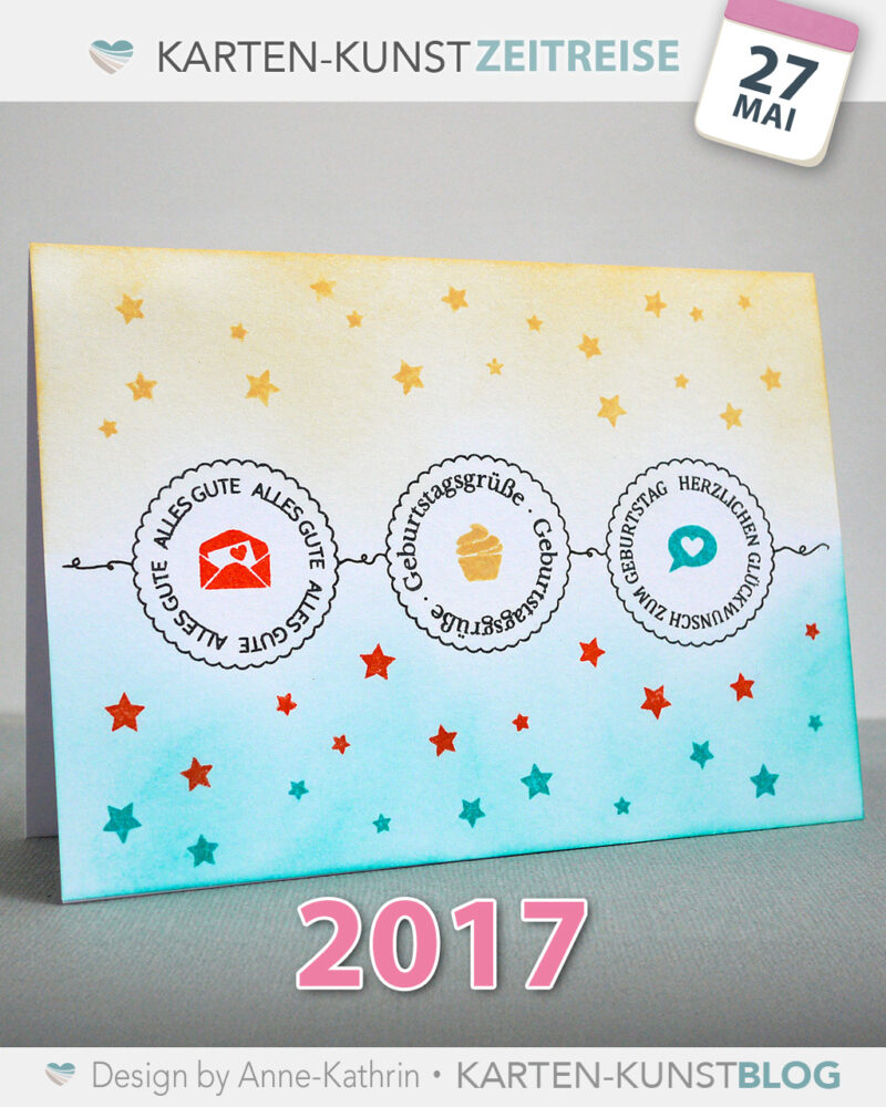 Mit Sternenstempeln und Farbverlauf entstand diese bunte Geburtstagskarte – eine meiner Bloglieblinge.