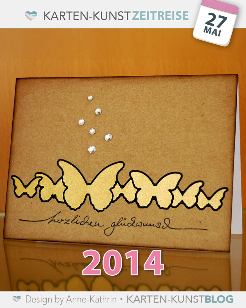 Diese Schmetterlingskarte mit goldenen Akzenten ist über 10 Jahre alt – und ich mag sie immer noch. Man sieht: Stempeln und Stanzen ist zeitlos.