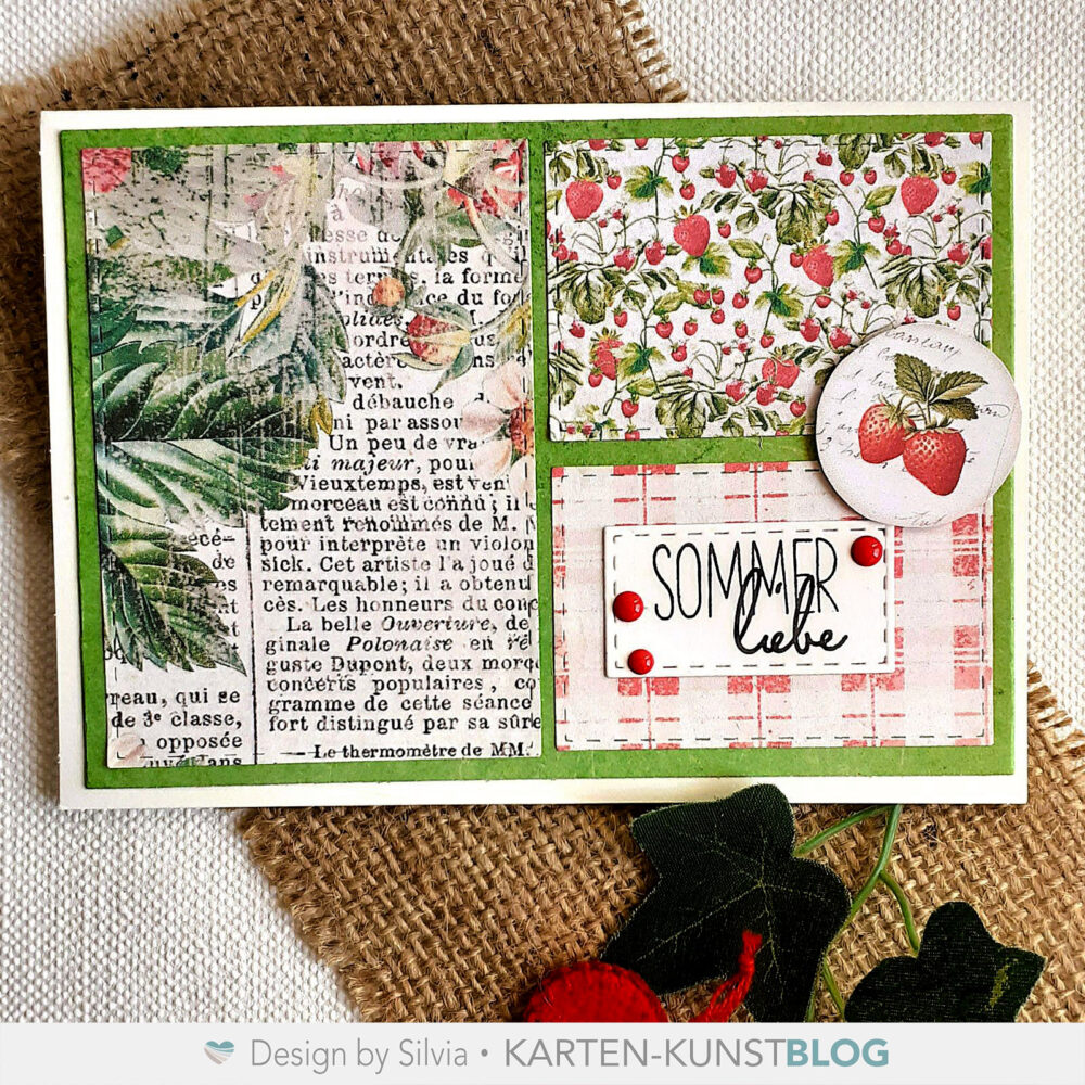FĂŒr meine heutige Karte, die ein Glas selbstgemachte Erdbeermarmelade begleiten wird, habe ich das Set kk-D207 âCard Designer A6â genutzt und damit sowohl den passenden Kartenaufleger, als auch die anderen rechteckigen StĂŒcke gestanzt.