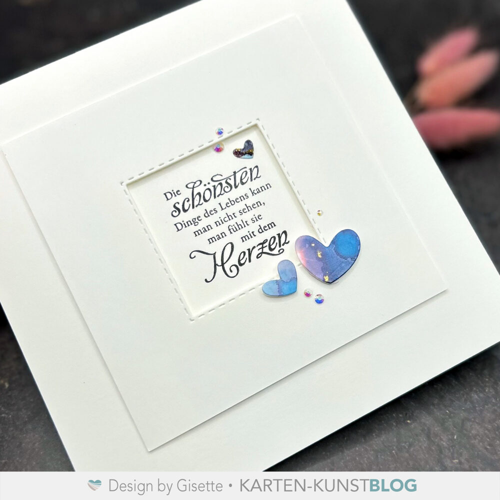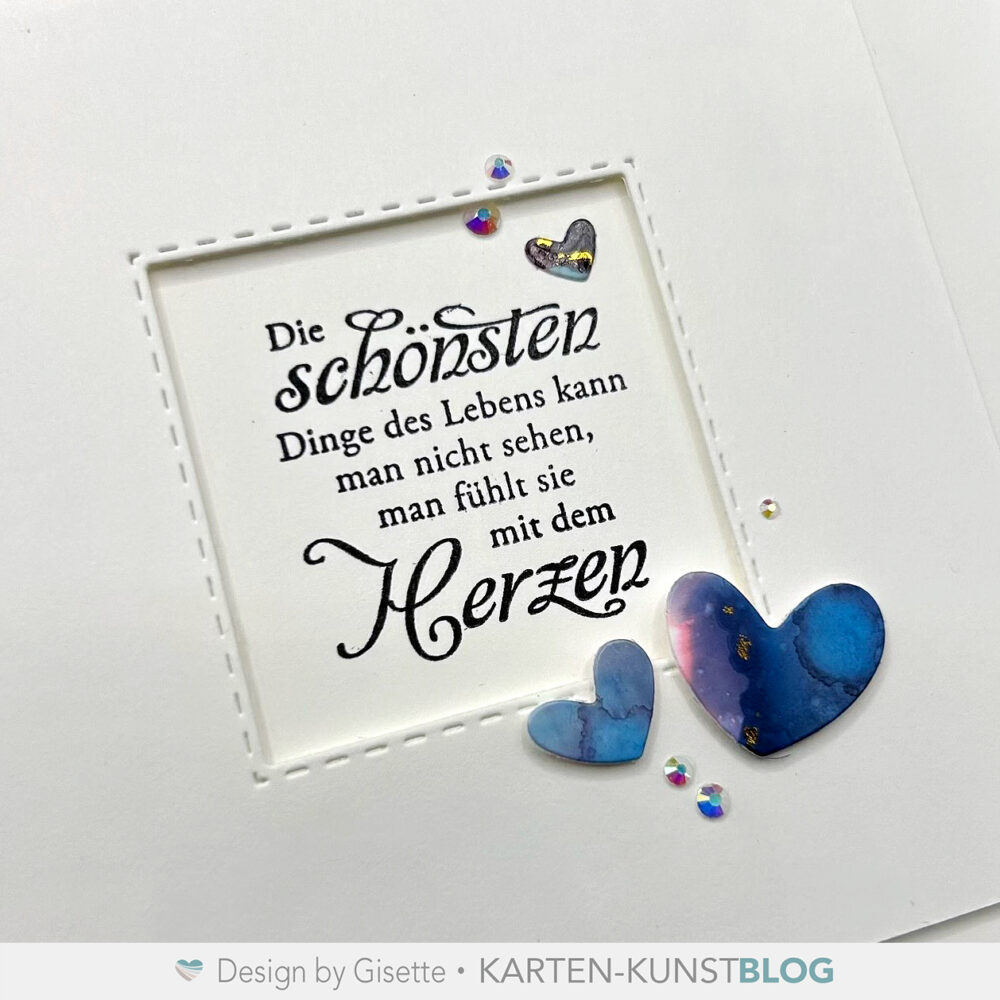 Ein paar Herzchen aus dem Set „Mini Cool Hearts“ dazu, ein bisschen Bling Bling und mehr braucht es nicht meiner Meinung nach 😉