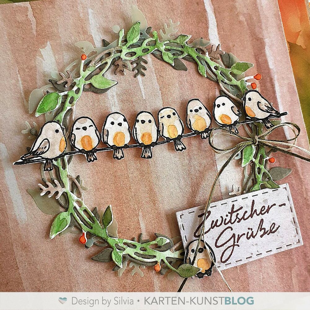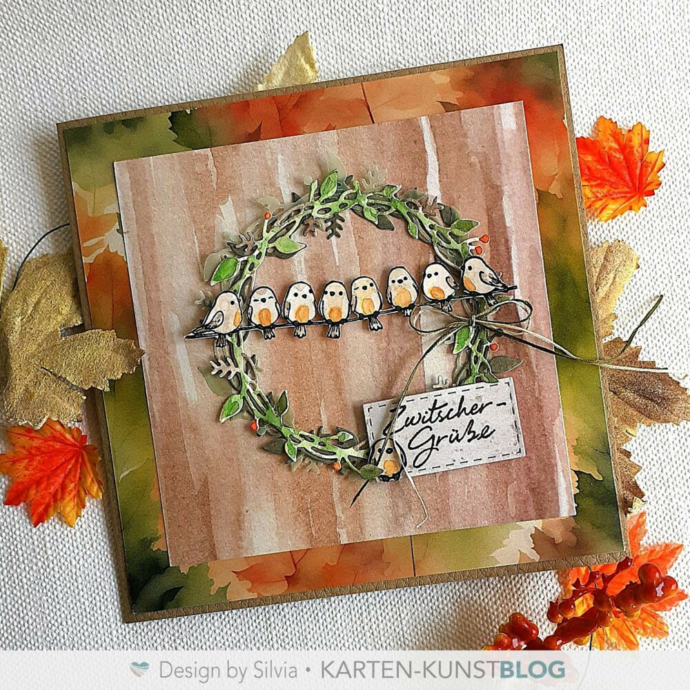 heute habe ich schon mal eine leicht herbstlich angehauchte Karte für euch und dafür die niedlichen Vögelchen aus dem Stempelset KK-0283 „Vogelglück“ vom @kartenkunstshop in einen Kranz gesetzt.