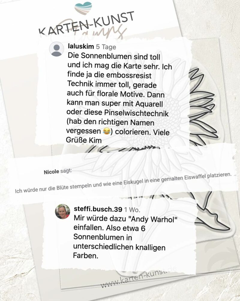 Und weil so viele von euch richtig schöne und ganz unterschiedliche EinfĂ€lle hatten, möchte ich noch ein paar weitere Kommentare teilen â sie zeigen, wie vielseitig dieser Stempel sein kann: