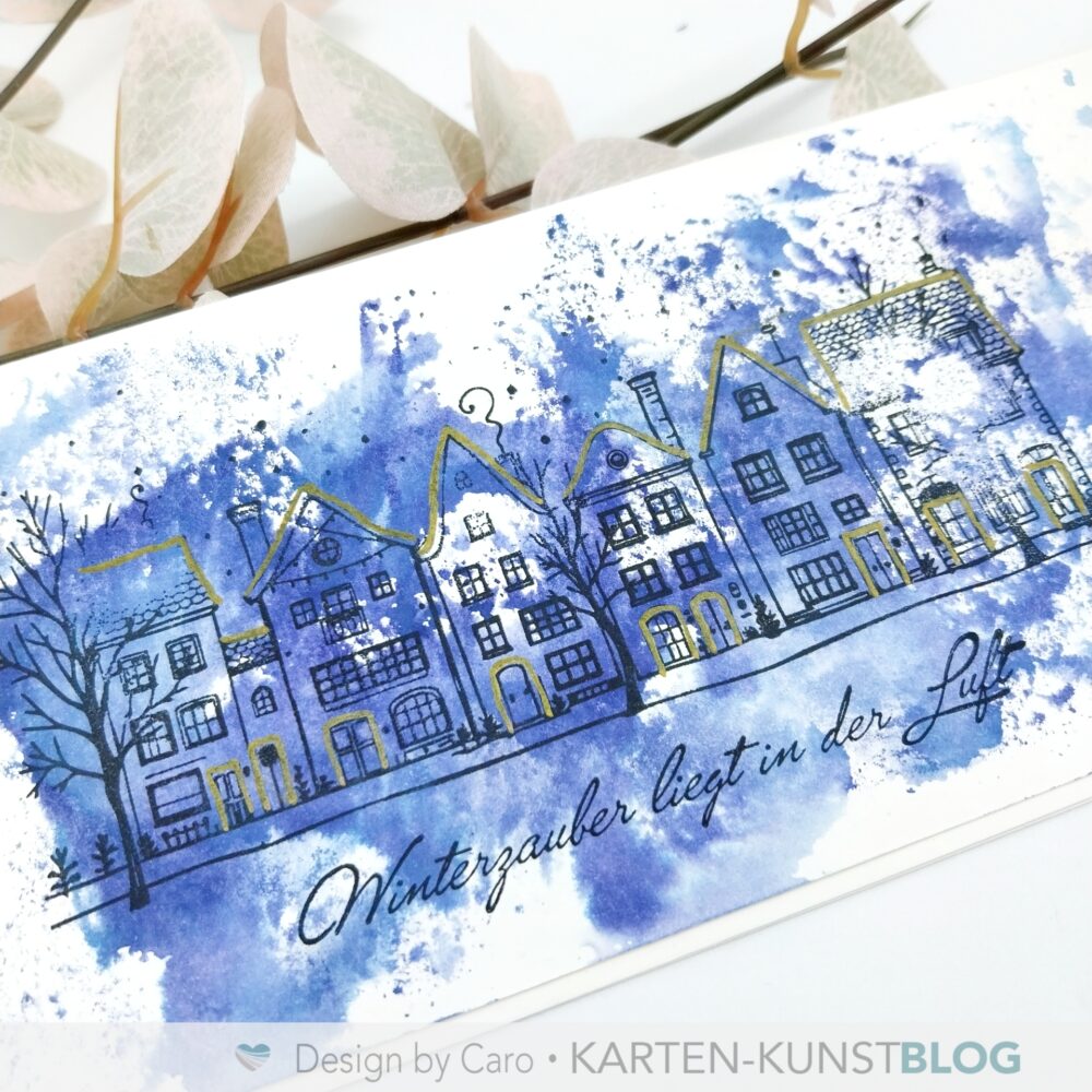 Den Stempelabdruck der Häuserreihe habe ich noch mit einem goldenen Marker verziert.