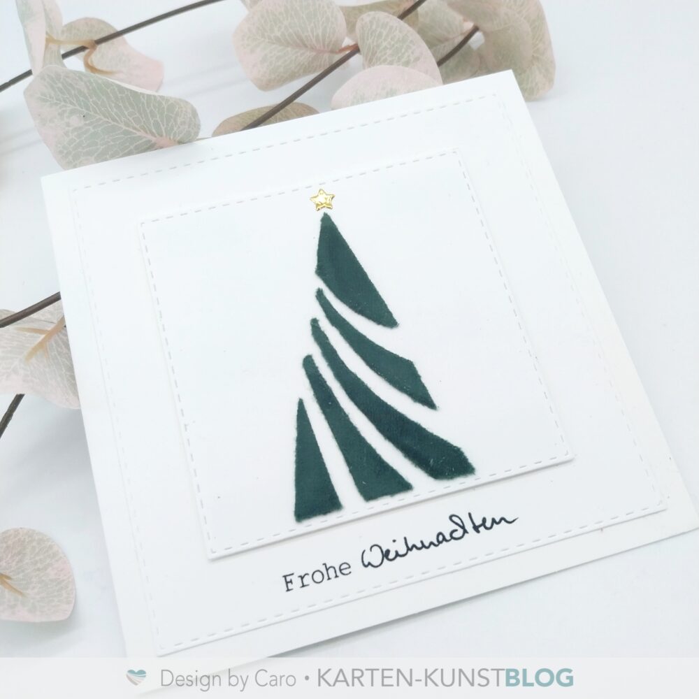 Die Idee, den Weihnachtsbaum vom @kartenkunstshop mit einem grünen Samststoff aus meinem Bestand zu gestalten, kam mir, nachdem ich eine Karte von @gisettesdesign gesehen hatte, mit dem grauen Wavy Ornament.