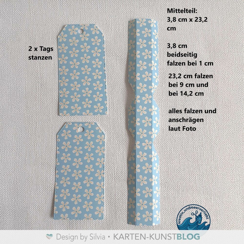 Die kleine offene Box ist mit der GröĂten Stanzform aus den kk-D066 âTags with Stitchesâ aus dem @kartenkunstshop ganz schnell gemacht. Ihr braucht nur noch ein MittelstĂŒck einkleben â eine Anleitung findet ihr auf dem letzten Foto.