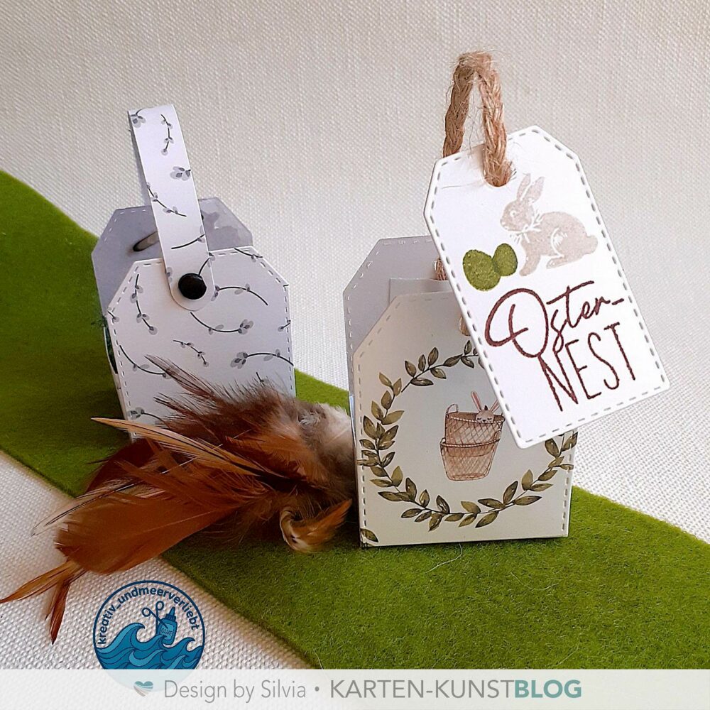 Mir war nach Frühling und Ostern und so habe ich mit der größten Stanzform aus den kk-D066 „Tags with Stitches“ aus dem @kartenkunstshop ein paar kleine Oster- oder Frühlingsnester gestaltet 🤗 und auch tatsächlich mal den kleinsten Tag als Anhänger genutzt 😉