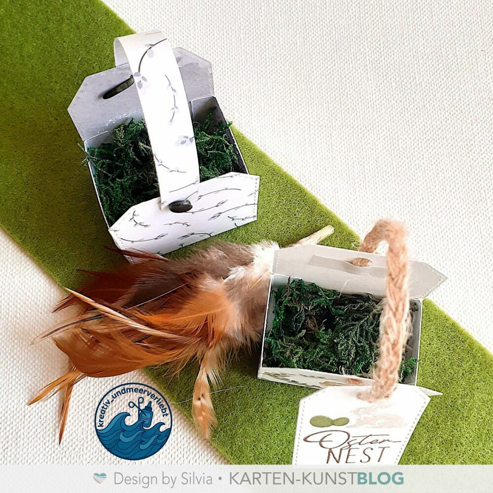 Osterschokolade findet sich bei mir auch noch nicht, also sind die Mini-Nester erstmal nur mit etwas „Gras“ gefüllt. Es ist ja noch ein wenig Zeit.