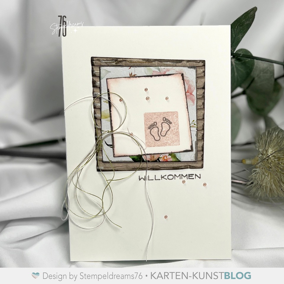 Mit Stempel und Stanzen aus dem @kartenkunstshop kreiere ich heute eine Babykarte im Vintagelook.
