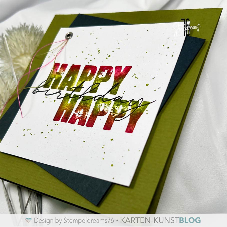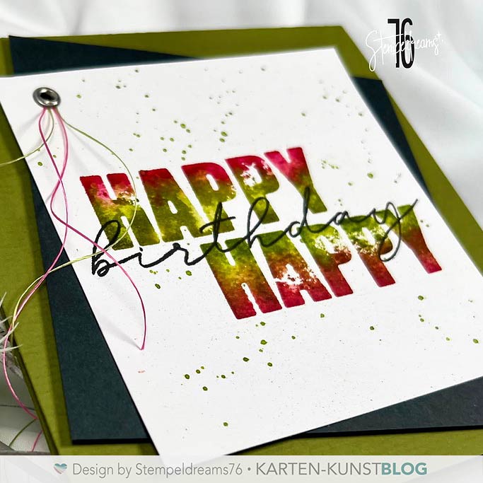 Ich zeige dir, wie du mit nur 1 Stempelset und 2 Stempelkissen eine Karte im Ombre-Look kreieren kannst. Dazu habe ich das geniale Stempelset „Mega Happy“ verwendet.