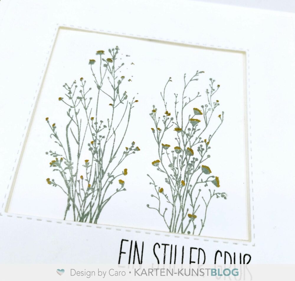 Als Farbe habe ich mich hier bewusst gegen schwarz entschieden und die Blumen mit einem Gold Metallic Stift an den Blüten verziert.