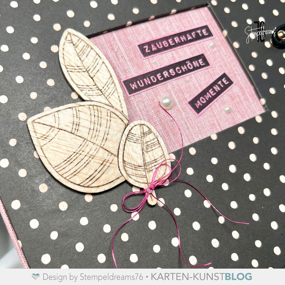Mit den Stempelsets „Labelwriter Zauberhafte Wünsche“ (Artikelnr.: KK-0282) und „Blätter/Scribble Leaves“ (Artikelnr.: KK-0151) habe ich mir ein wunderschönes Album kreiert.