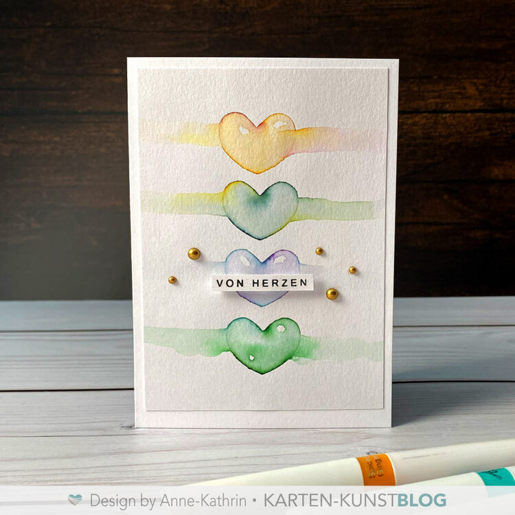 Manchmal reicht schon ein bisschen Farbe und Wasser, um eine Karte lebendig wirken zu lassen. In dieser Karte stehen die weichen Farbverläufe der Herzen im Mittelpunkt – unkompliziert, ruhig und […]