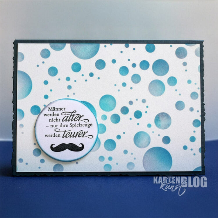 Karten-Kunst Clear Stamps KK-0124 – Weise Worte für Männer Außerdem: Hintergrund-Stencil mit Kreisen, eingefärbt mit Distress Oxide Stempelkissen und Blender Brush