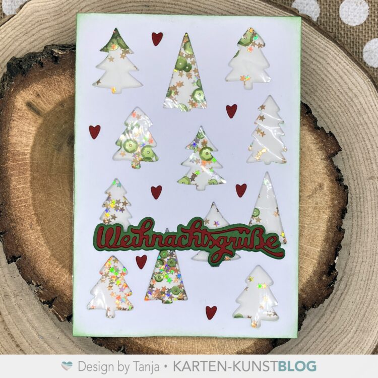 Karten-Kunst Stanzschablone kk-D231 – Tannenbäume Karten-Kunst Stanzschablone kk-D125 – Nyala Script Weihnachtsgrüße Papier: roter Cardstock und grüner Cardstock, Bristol Smooth Cardstock Sonstiges: Pailletten, Schaumklebeband, Acetat Hier geht es zur Schritt-für-Schritt-Anleitung […]